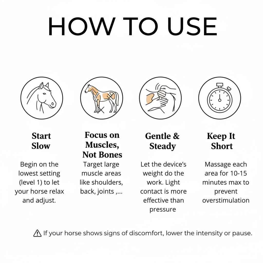 Most tools aren’t made for horses. They buzz, vibrate, or feel gimmicky, offering surface-level relief that never reaches deep tension, stiffness or old injuries.